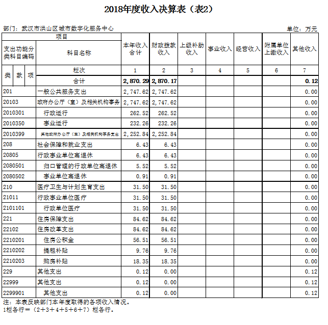 2018年度本年收入合计2870.29万元。其中:财政拨款收入2870.17万元,占本年收入99.99%;上级补助收入0万元,占本年收入0%;事业收入0万元,占本年收入0%;经营收入0万元,占本年收入0%;附属单位上缴收入0万元,占本年收入0%;其他收入0.12万元,占本年收入0.01%。