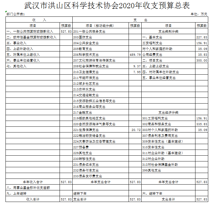 名 称:黄色网址 科学技术协会2020年收支预算总表