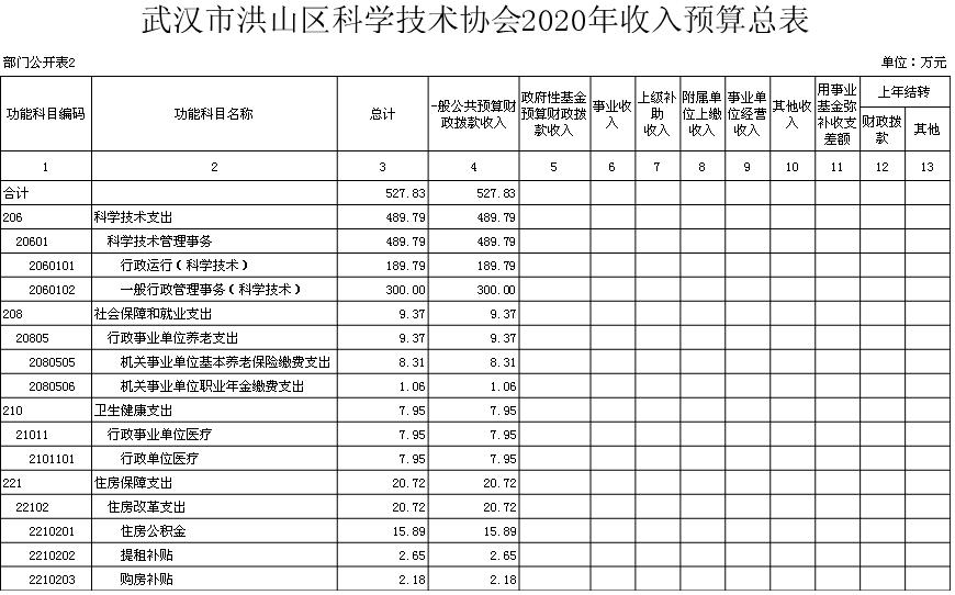 名 称:黄色网址 科学技术协会2020年收入预算总表