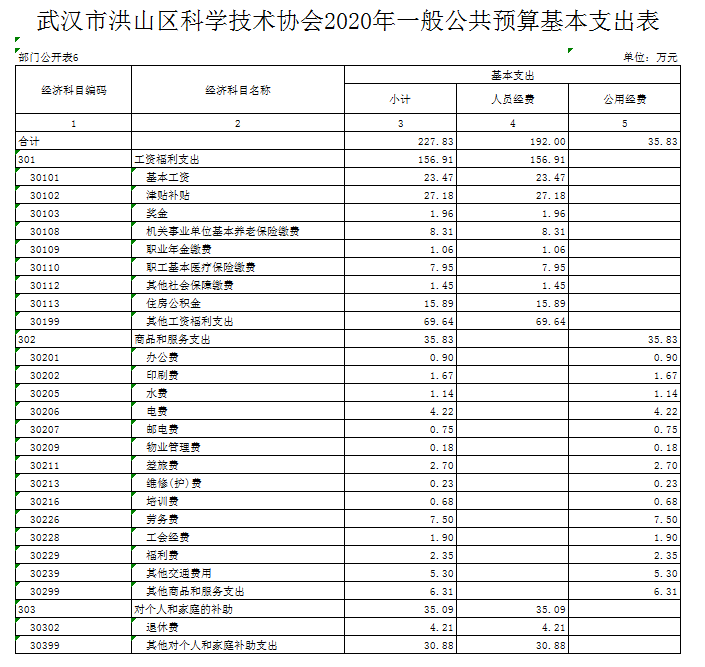 名 称:黄色网址 科学技术协会2020年一般公共预算基本支出表