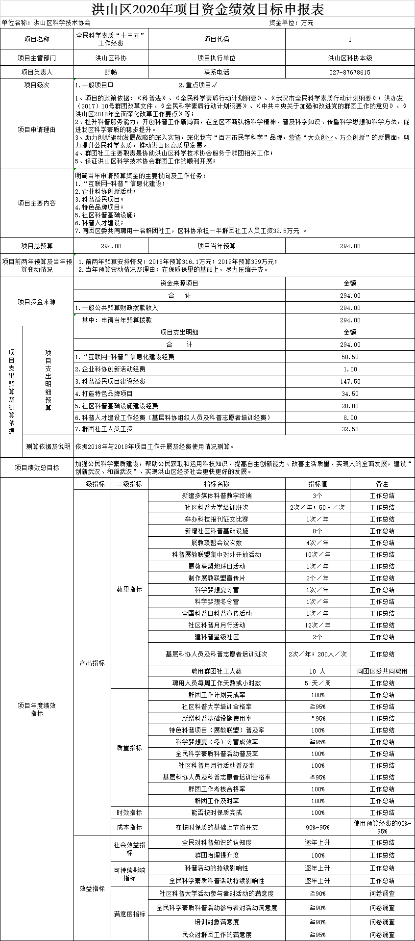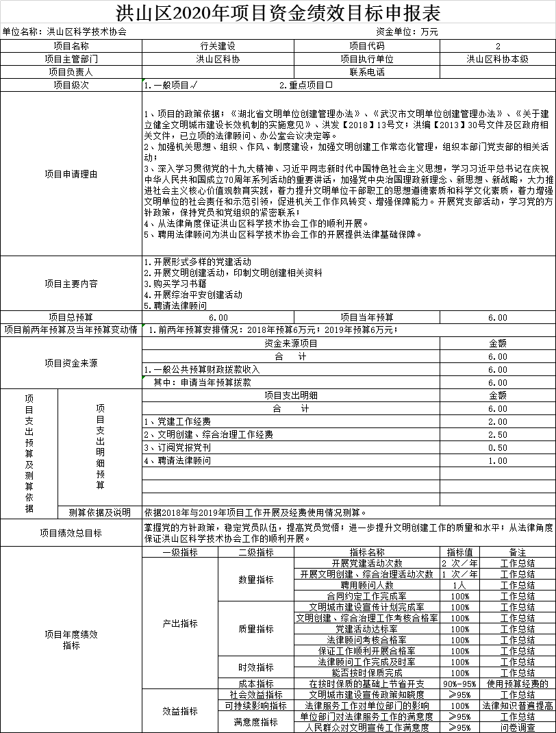 名 称:黄色网址 科学技术协会2020年项目资金绩效目标申报表