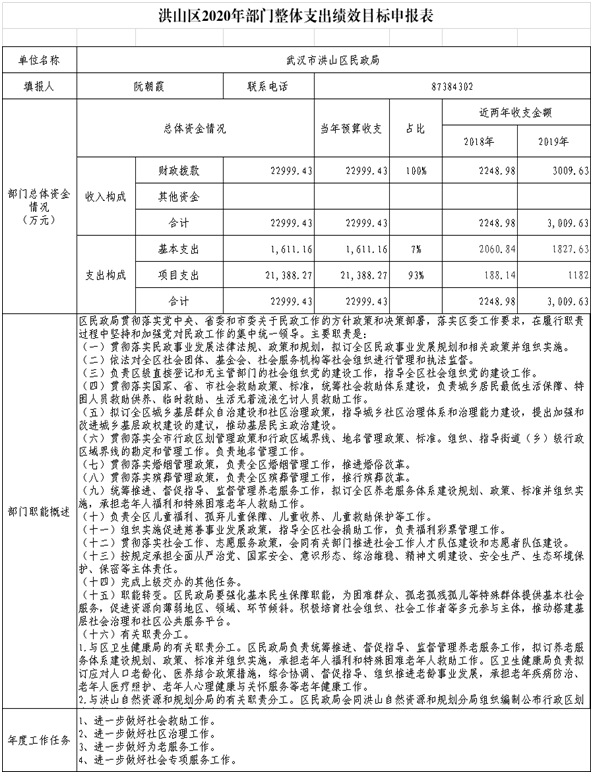 名 称:黄色网址 民政局2020年整体支出绩效目标申报表