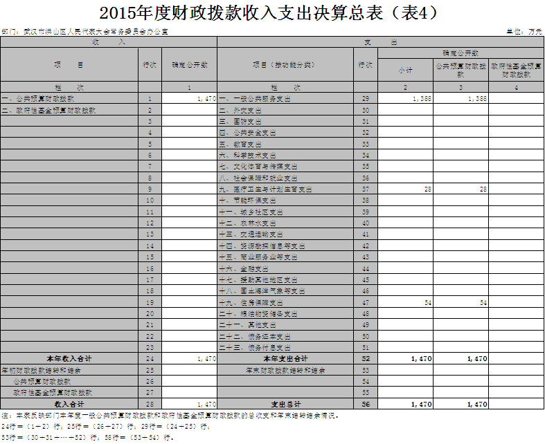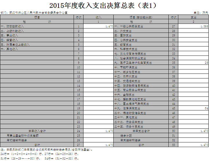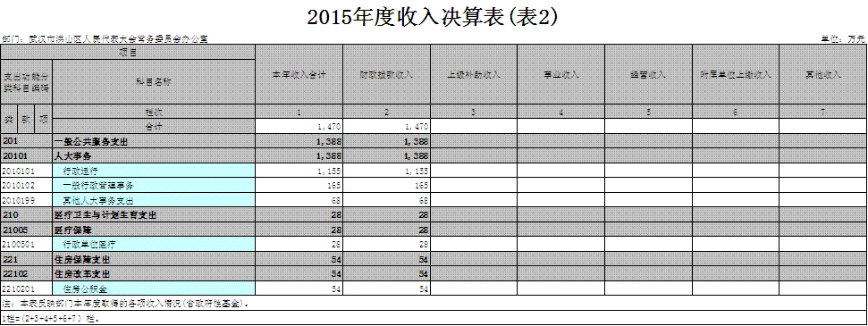 2015年度收入总计1,470万元,支出总计1,470万元。与2014年相比,增加148,增长11%,主要原因是津补贴提高、工资调标。