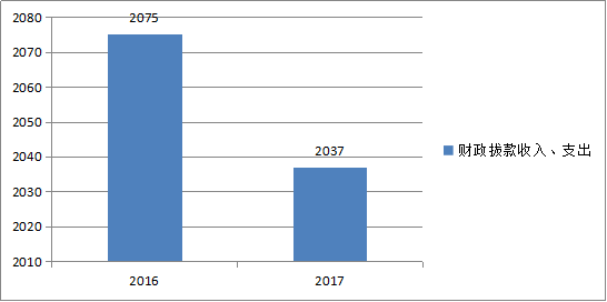 2017年度财政拨款收、支总计2,037万元。与2016年相比,财政拨款收、支总计各减少38万元,降低1.83%。主要原因是遵守中央八项规定,厉行节约。