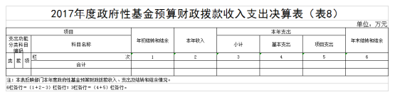 八、政府性基金预算财政拨款收入支出决算表(表8)