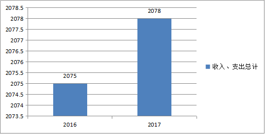 2017年度收、支总计2,078万元。与2016年相比,收、支总计各增加3万元,增长0.14%,主要原因是人员增加。