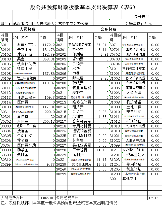 六、一般公共预算财政拨款基本支出决算表(表6)