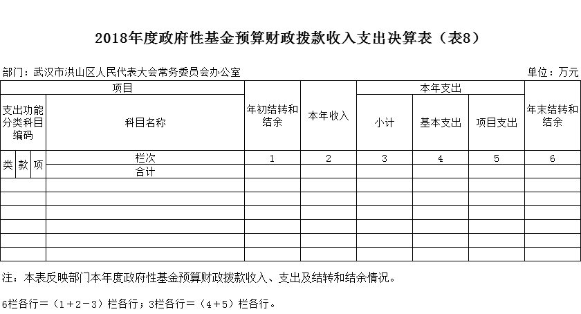 八、政府性基金预算财政拨款收入支出决算表(表8)