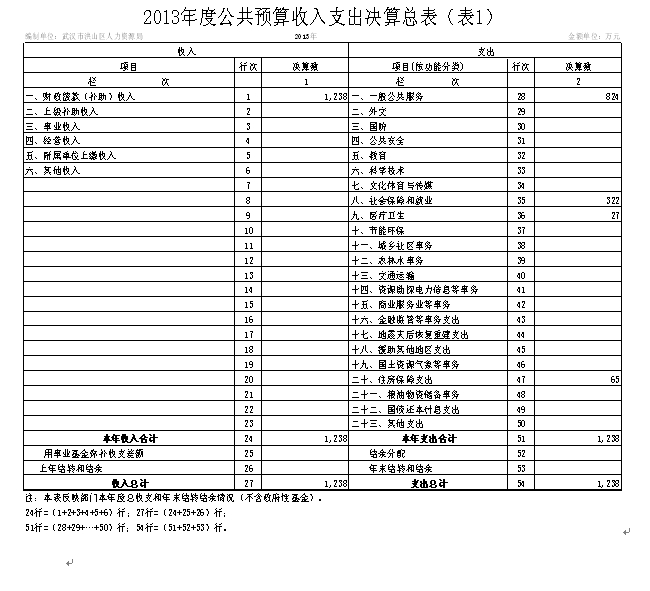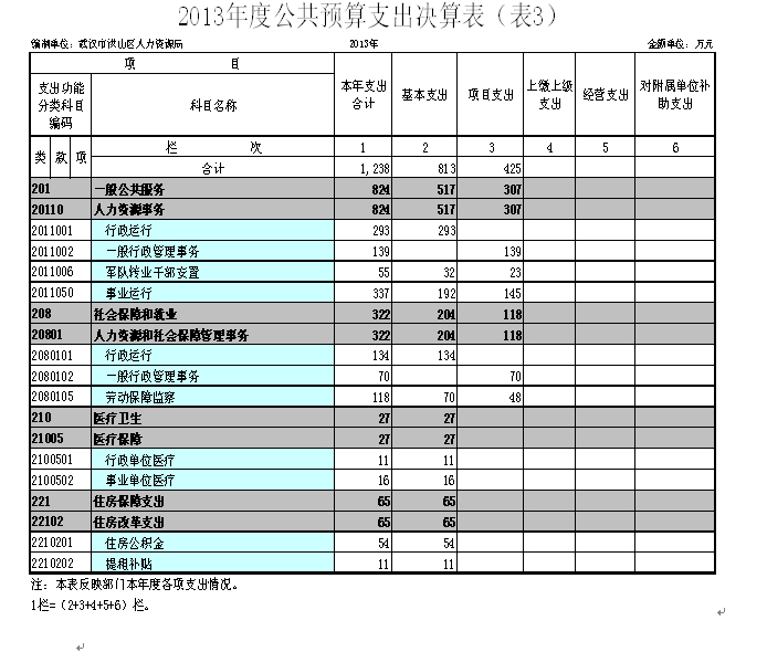 二、黄色网址 人力资源局2013年度公共预算收入支出决算总表