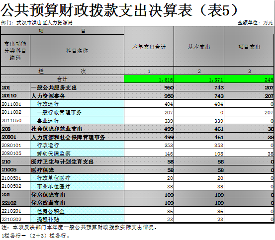2016年一般公共预算财政拨款支出年度预算为1616万元(包括年初部门预算、基本建设等专项资金、上级下达的专项转移支付资金及年初结转和结余资金等),支出决算为 1616万元,完成年度预算的123%。其中:基本支出1371万元,项目支出245万元。项目支出主要用于劳动用工监察工作经费19.2万元,主要成效:政策法规宣传、劳动保障监察专项行动、执法设备等采购与维护及其他日常工作支出;劳动保障网格化管理运行、劳动监察协管员培训经费19万元,主要成效:劳动监察网格工作经费、监察协管员培训及其他日常工作支出;公务员管理工作经费8万元,主要成效:公务员招录资料费、外调政审差旅费、全区军队转业干部、随军家属安置工作经费。企业军转和自主择业军队干部慰问24万元,全区企业军转干部“八一”“春节”慰问物资、慰问金, 重大节日、全国及省市区两会期间维稳费用;就业再就业工作经费14万元,街(乡)劳动保障所工作人员、社区就业专干业务培训,就业政策宣传(资料、宣传册)印制费,社区工作人员招聘考试费用等。