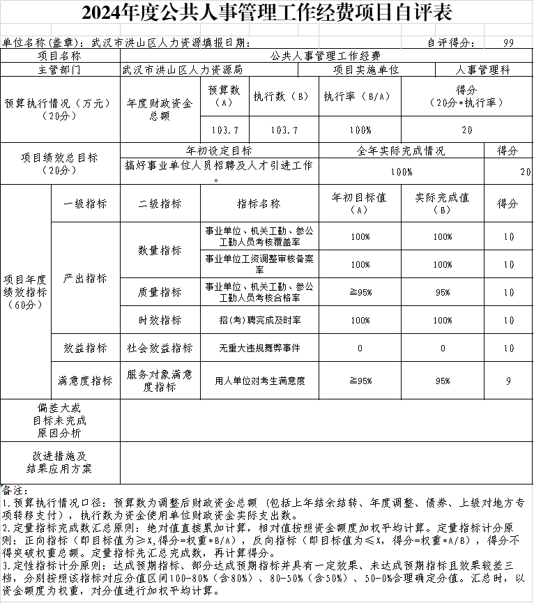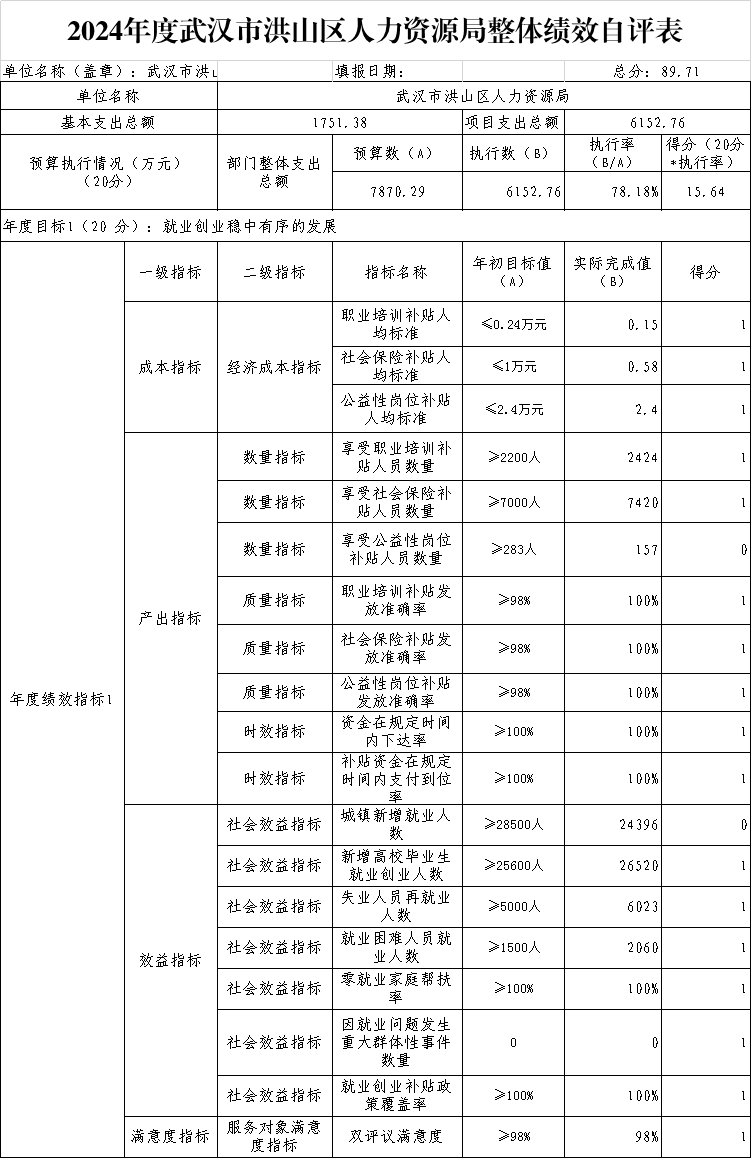 一、2024年度黄色网址 人力资源局本级整体绩效评价自评表或(报告)