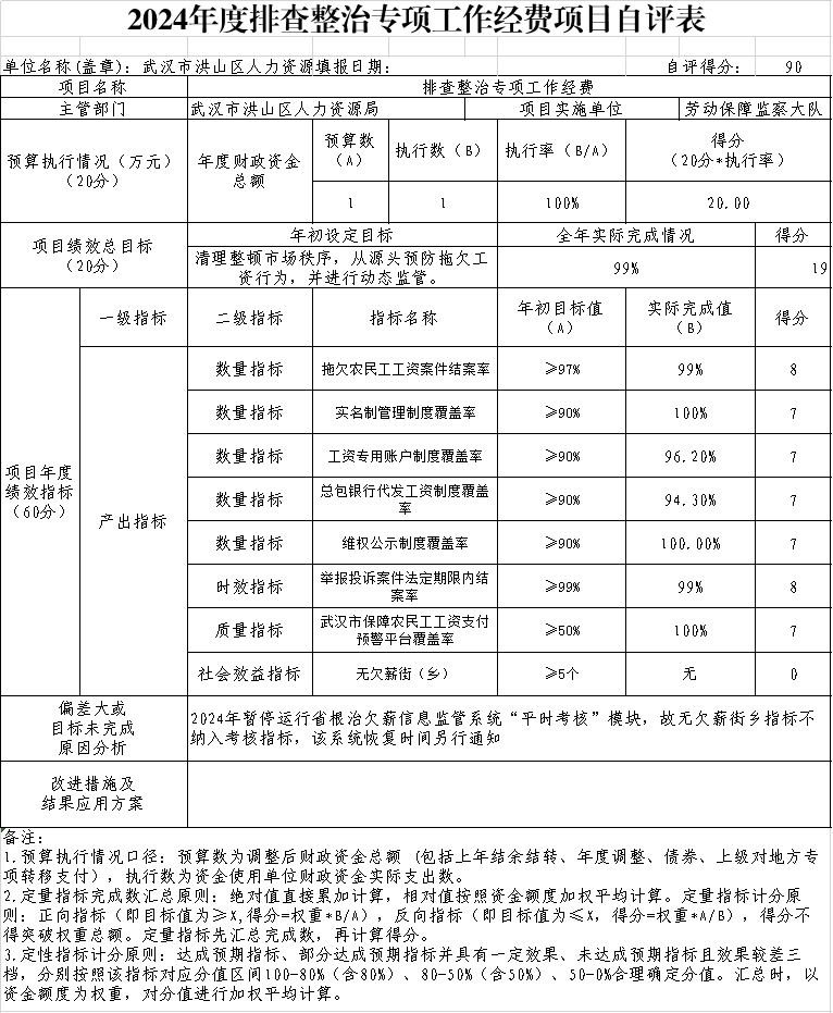 下一步改进措施:一是进一步提升案件处置力度。严格落实我区根治拖欠农民工工资工作领导小组职责,进一步完善多部门联合治理机制。同时联合行业主管部门及街道对隐患项目开展督办约谈,及时化解欠薪隐患问题。强化“两法”衔接,用好“黑名单”制度,整合各类诚信守法信用评级等资源,保证违法行为联合惩戒工作落实到位;二是持续做好隐患排查与日常巡查。充分发挥好各类信息平台和街乡一线执法人员作用,持续巩固前期走访成果,开展不定时回头看工作,持续开展欠薪隐患大排查,时刻保证对我区在建项目情况明晰,发现问题及时预警、及时介入、及时化解欠薪隐患问题,确保不发生因欠薪引发重大群体性事件、到市赴省进京上访事件、恶性极端事件和重大舆情事件。