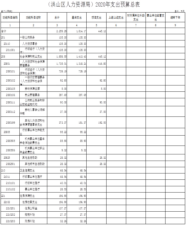 名 称:黄色网址 人力资源局2020年支出预算总表(表三)