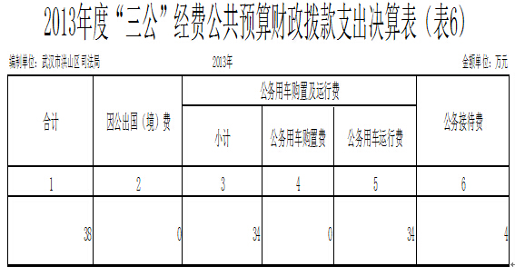 2013年度“三公”经费财政拨款支出决算为38万元。