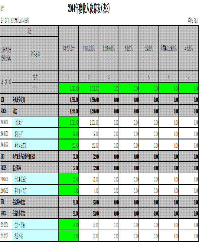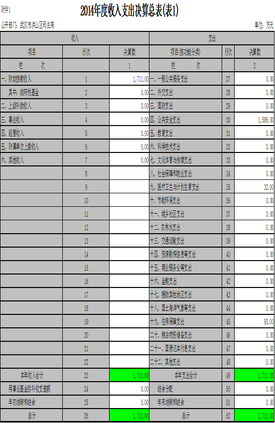 (一)一般公共服务支出(类)。年度预算为1,722万元,支出决算为1,711万元,完成年度预算的99.36%。