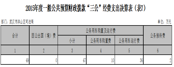 2015年度“三公”经费财政拨款年度预算数为73万元,支出决算为49万元,为预算的68%。其中: