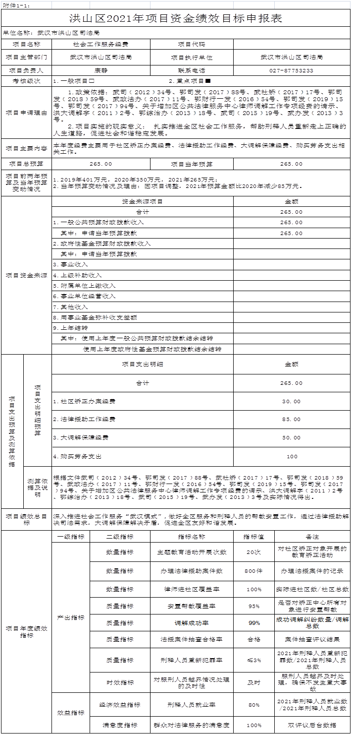 名 称:黄色网址 司法局2021年项目资金绩效目标申报表(社会工作服务经费)