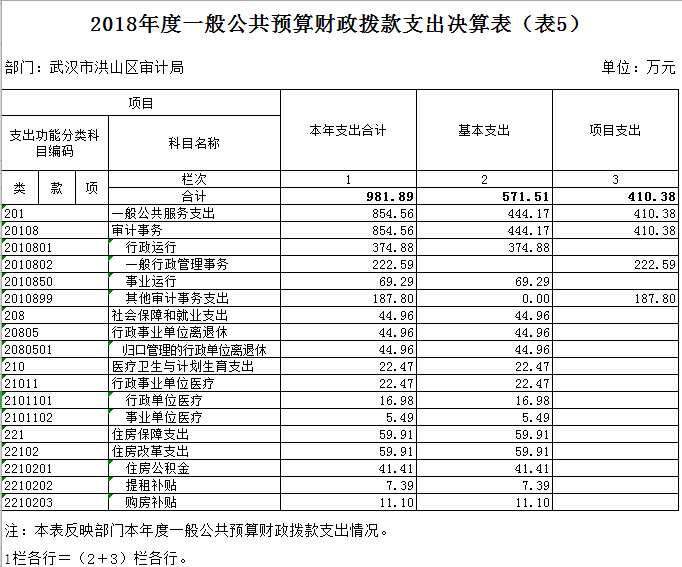2018年度财政拨款收、支总计981.89万元。与2017年相比,财政拨款收、支总计各增加144.89万元,增长14.76%。主要原因是审计任务增加,相关工作经费增加。