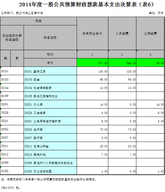 六、2014年度一般公共预算财政拨款基本支出决算表(表6)