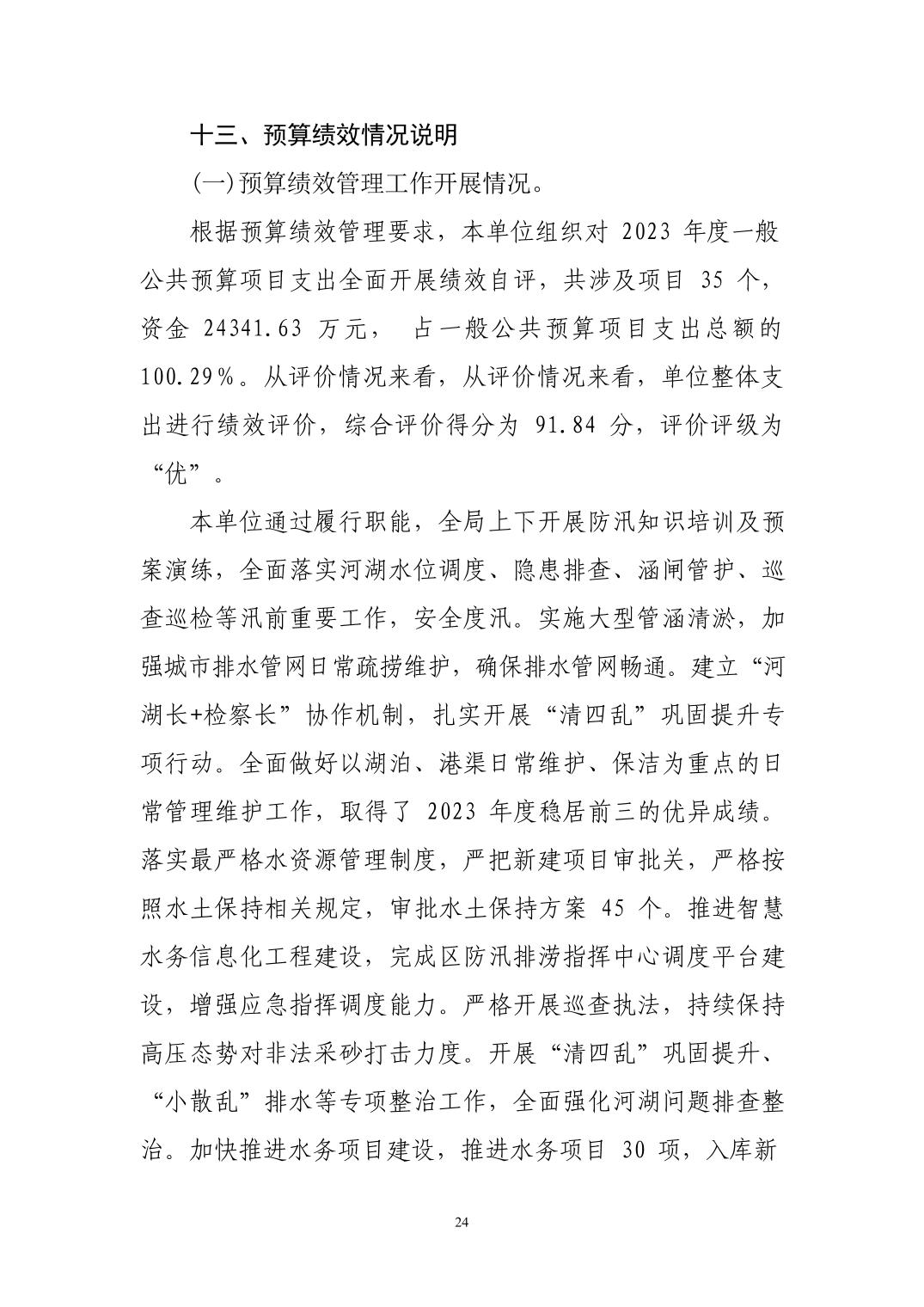 黄色网址 水务和湖泊局本级2023年度单位决算