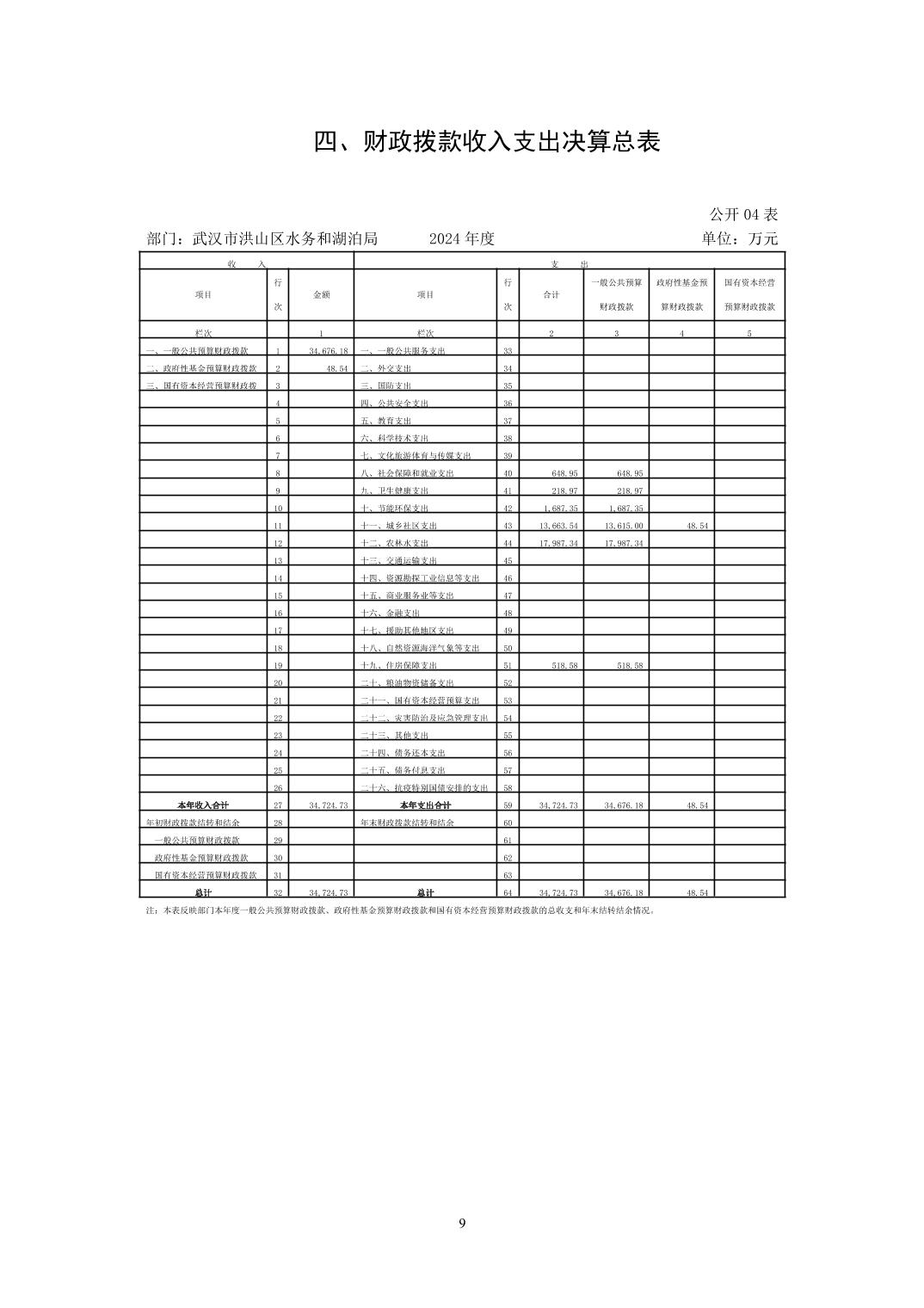 名       称:黄色网址 水务和湖泊局(汇总)2024年度部门决算公开