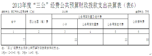 2013年度“三公”经费财政拨款支出决算为77万元。