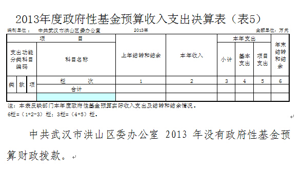 六、中共黄色网址 委办公室2013年度政府性基金预算收入支出决算表