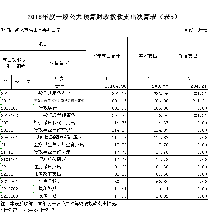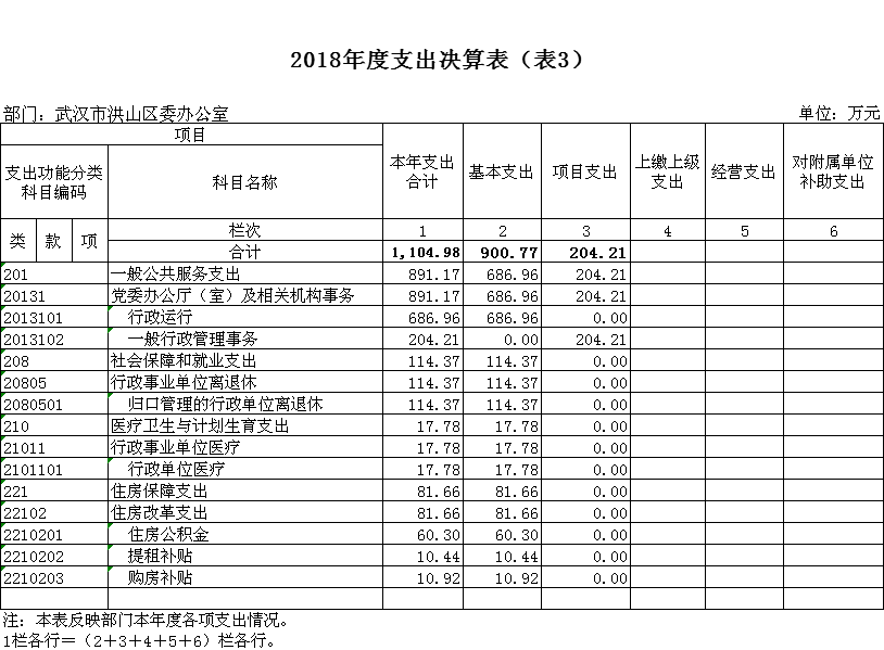 1.一般公共服务 行政运行(区委办公室):反映行政单位(包括实行公务员管理的事业单位)的基本支出。