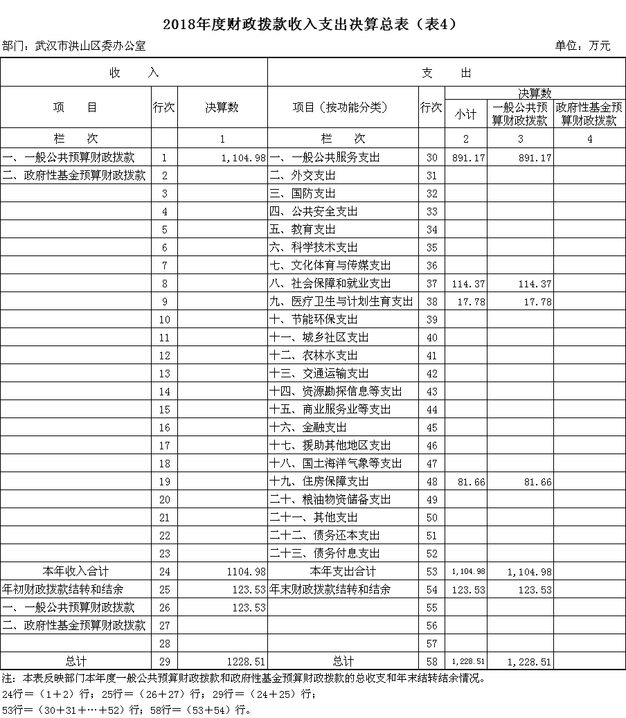 四、财政拨款收入支出决算总表(表4)