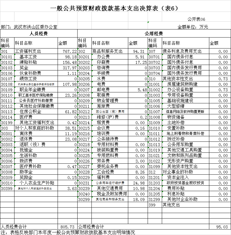 六、一般公共预算财政拨款基本支出决算表(表6)