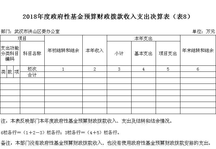 八、政府性基金预算财政拨款收入支出决算表(表8)