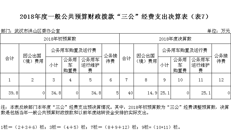 2018度“三公”经费财政拨款年度预算数为 39.8 万元,支出决算为 40 万元,为预算的 100.5 %,其中:
