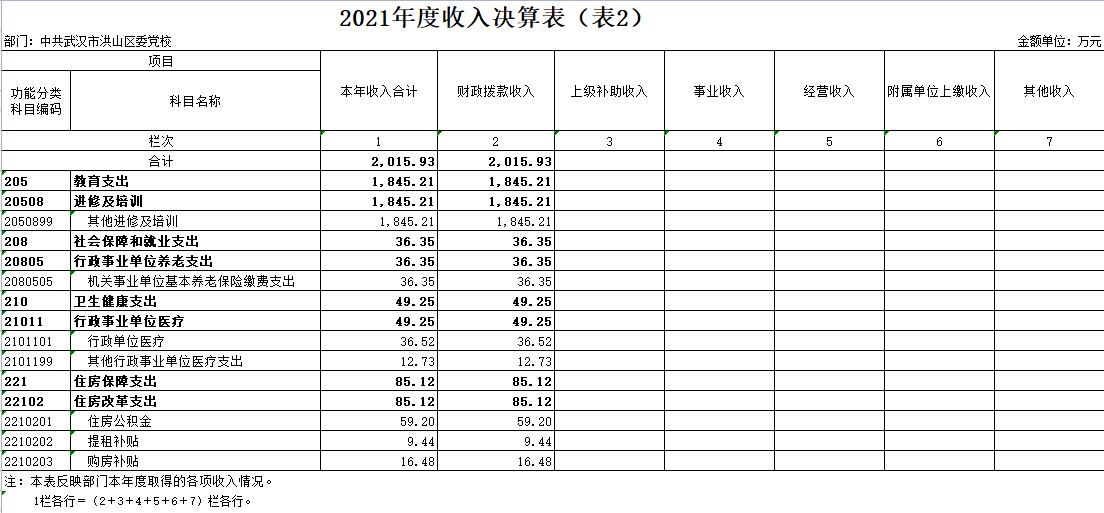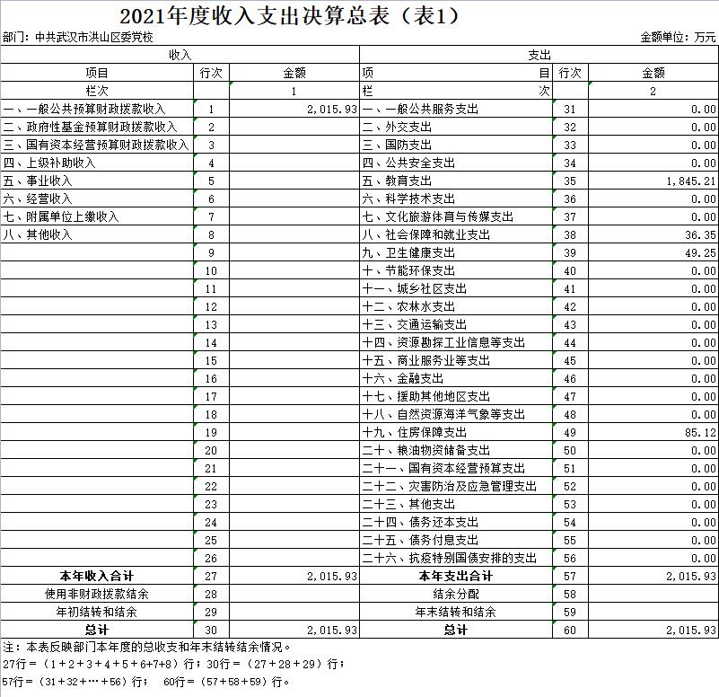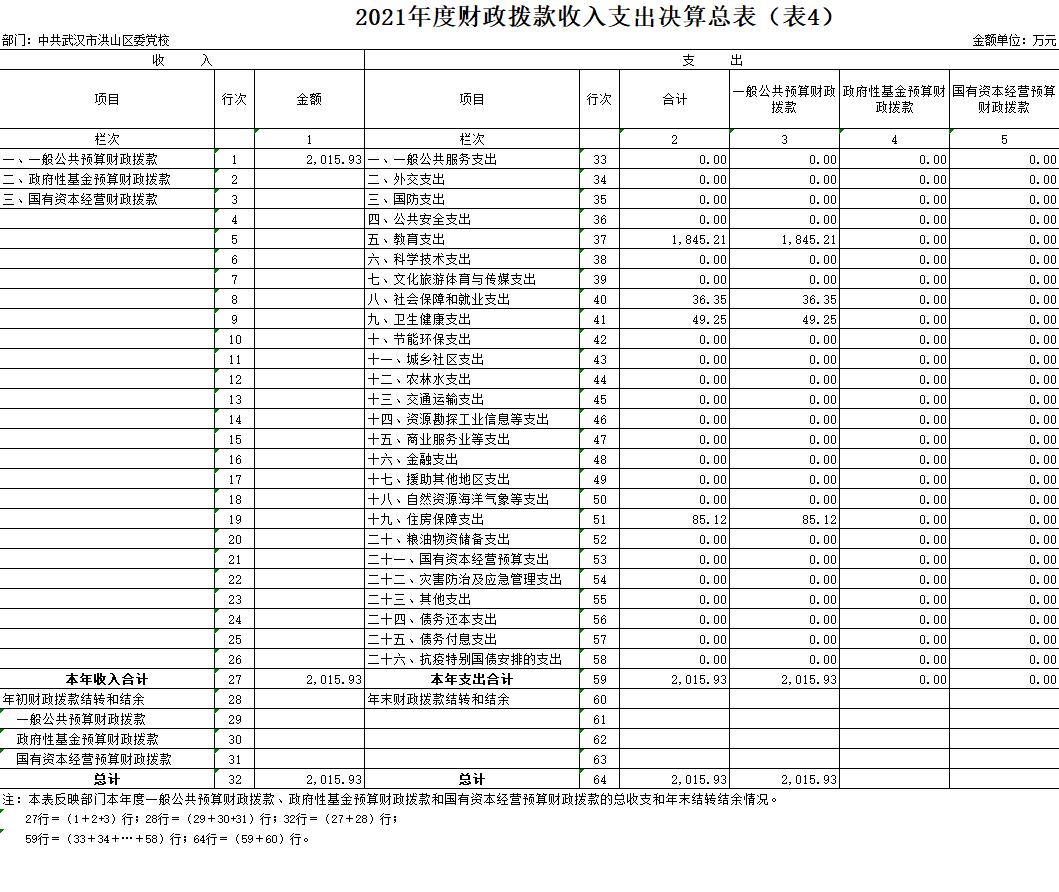 2021年度收、支总计2015.93万元。与2020年度相比,收、支总计减少2058.63万元,下降50.52%,主要原因是区委党校新校建设资金和隔离点防疫经费减少。