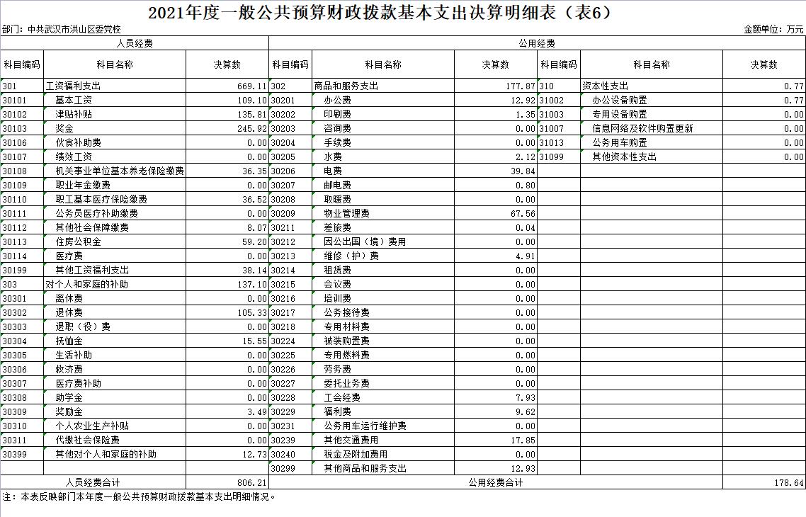 六、一般公共预算财政拨款基本支出决算明细表(表6)