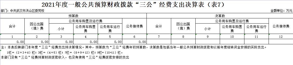2021年度“三公”经费财政拨款年初预算数为0万元,支出决算为0万元,完成年初预算的0%,其中: