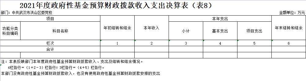 八、政府性基金预算财政拨款收入支出决算表(表8)