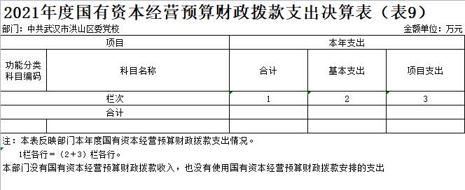 九、国有资本经营预算财政拨款支出决算表(表9)