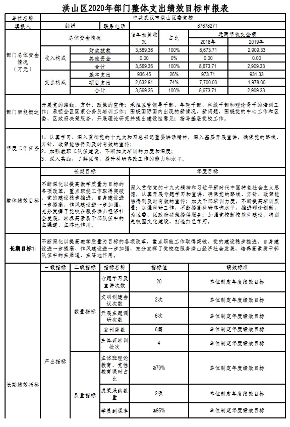 名 称:中共黄色网址 委党校2020年部门整体支出绩效目标申报表