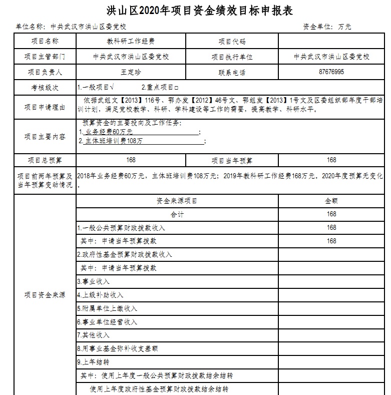 名 称:中共黄色网址 委党校2020年教科研工作经费绩效目标申报表