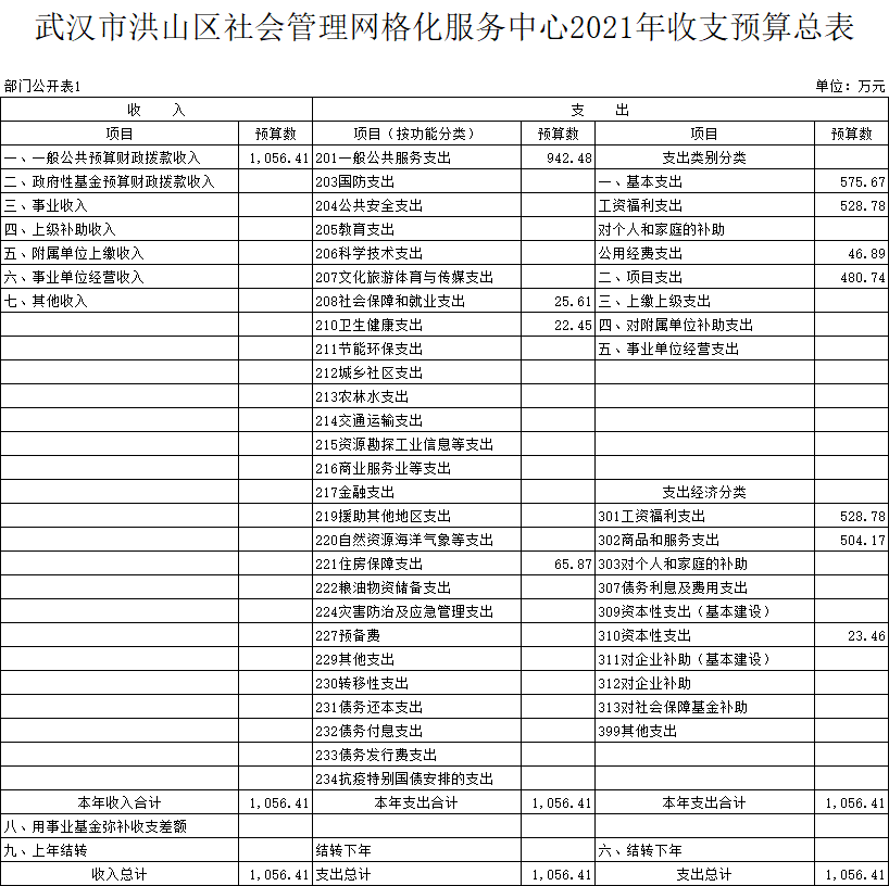 名 称:黄色网址 社会管理网格化服务中心2021年收支预算总表