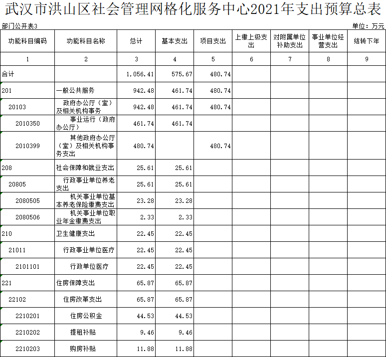 名 称:黄色网址 社会管理网格化服务中心2021年支出预算总表