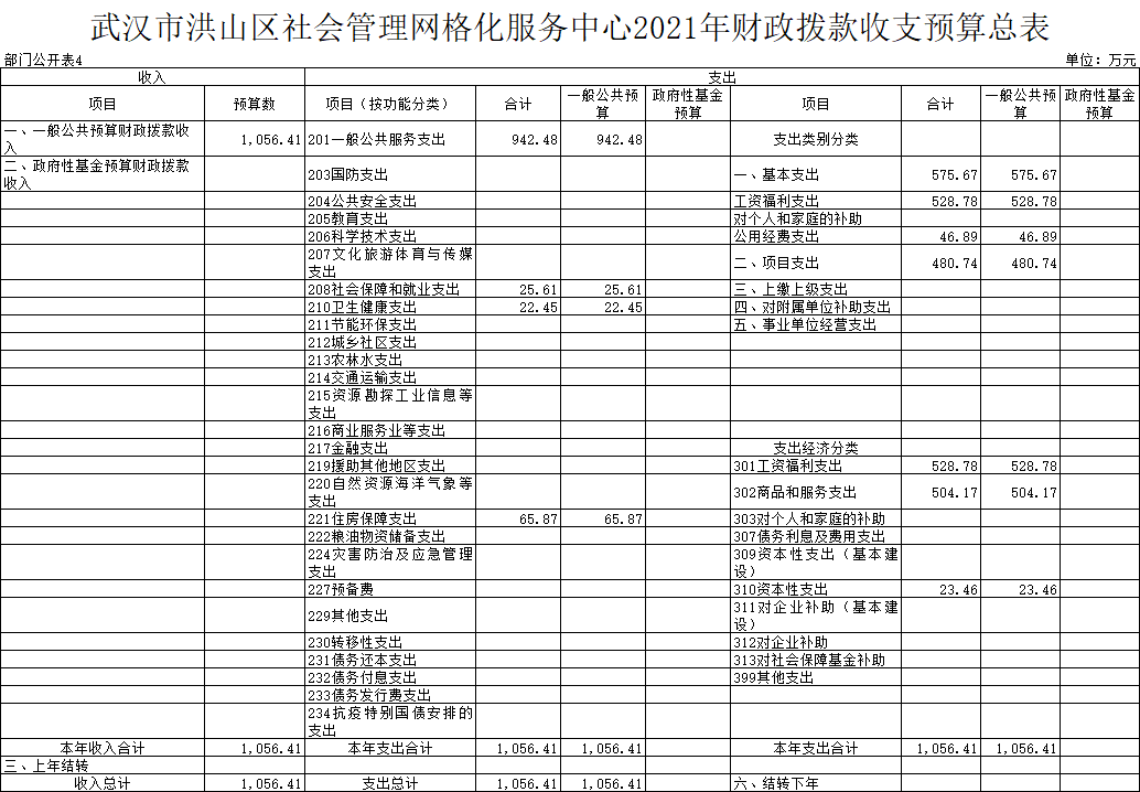 名 称:黄色网址 社会管理网格化服务中心2021年财政拨款收支预算总表