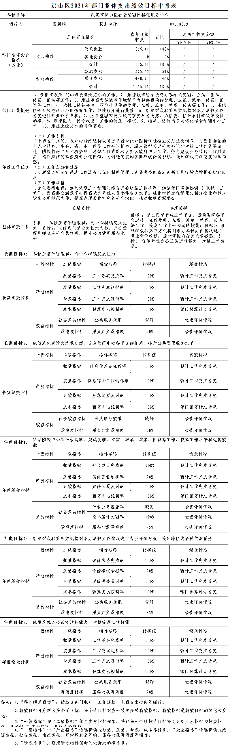 名 称:黄色网址 社会管理网格化服务中心2021年整体支出绩效目标申报表