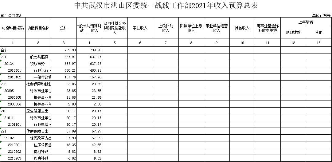 名 称:中共黄色网址 委统一战线工作部2021年收入预算总表