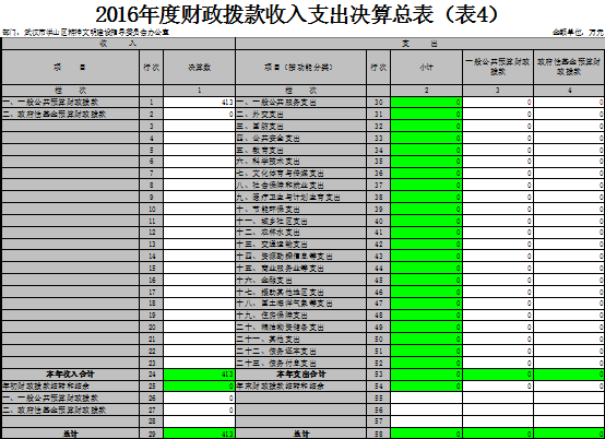 2016年度收入总计413万元,支出总计413万元。与2015年相比,收、支总计各增加(减少)(94)万元,增长(降低)(18.5)%,主要原因是全区文明创建氛围在2015年已经做得足够完善,相关经费在2016年开销有所减少。