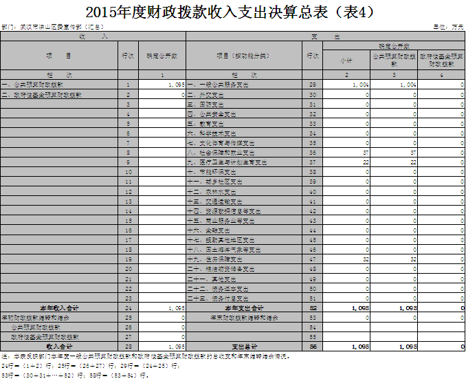 四、财政拨款收入支出决算总表(表4)