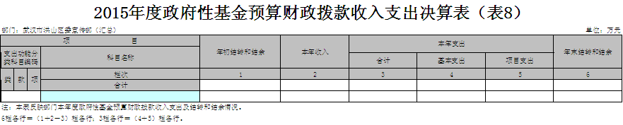 八、政府性基金预算财政拨款收入支出决算表(表8)