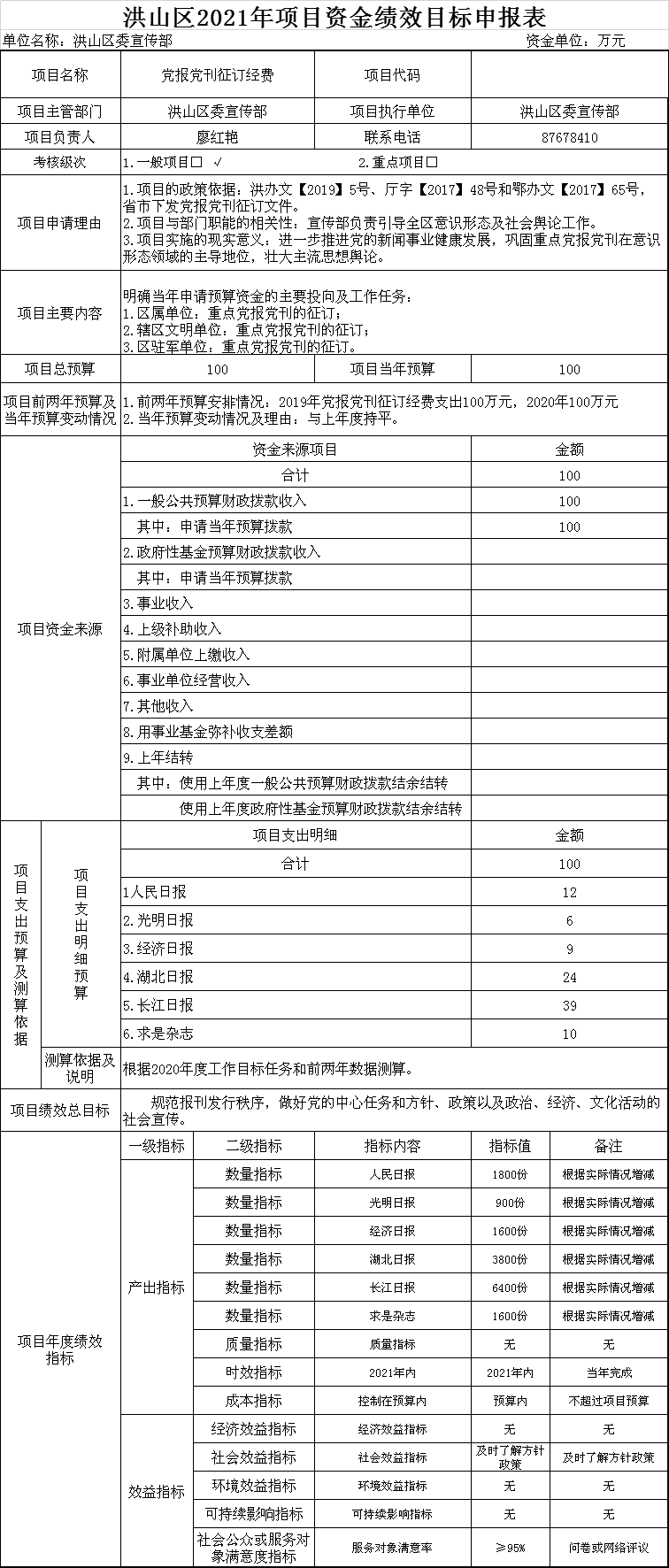 名 称:中共黄色网址 委宣传部2021年项目资金绩效目标申报表
