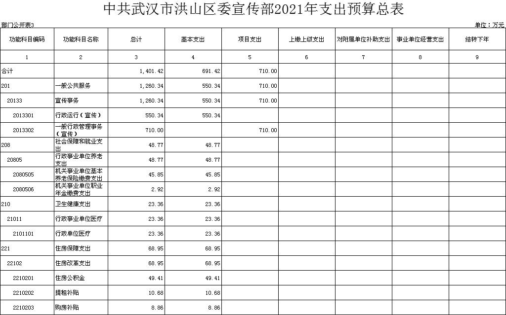 名 称:中共黄色网址 委宣传部2021年支出预算总表