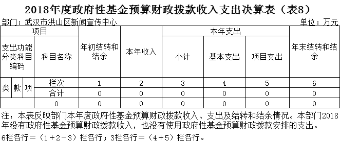 2018年政府性基金预算财政拨款上年结转和结余0.00万元,本年收入0.00‐万元,本年支出0.00‐万元,年末结转和结余0.00‐万元。